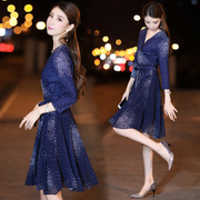 • 宝贝名称: 连衣裙2017秋装新款女装韩版收腰时尚中长款飘逸V领名媛仙女裙子