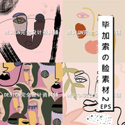 • 宝贝名称: 抽象当代国外人脸肖像矢量AI素材画芯挂画莫兰迪色装饰画围巾设计