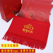 • 宝贝名称: 中国红围巾定制刺绣logo年会企业活动兔本命年男女款大红披肩礼物