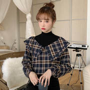 • 宝贝名称: 2021春秋娃娃领假两件格子长袖衬衫女设计感小众复古别致上衣法式