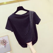 • 宝贝名称: 纯棉2020年夏季新款烫钻黑色不规则T恤女短袖设计感小众洋气上衣