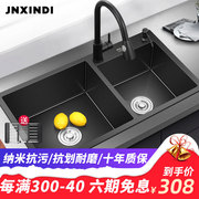 • 宝贝名称: 厨房黑色纳米水槽双槽304不锈钢洗菜盆洗碗池加厚手工盆家用大号