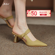 • 宝贝名称: 2021夏季新款包头拖鞋女韩版时尚ins气质尖头百搭真皮细跟高跟鞋