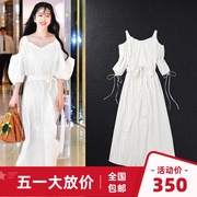 • 宝贝名称: 代购2021唐艺昕明星同款白色吊带露肩连衣裙女显瘦气质长裙度假裙