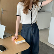 • 宝贝名称: TG拼色V领短袖针织衫女2021夏季新款温柔修身短款开衫上衣13869