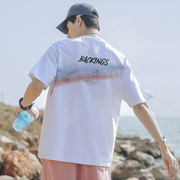 • 宝贝名称: s新港风2022夏新款彩虹印花T恤纯棉宽松情侣短袖T恤潮牌男装
