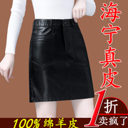 • 宝贝名称: 海宁真皮皮裙女动感 哥弟正品小个子高腰包臀绵羊皮a字裙半身裙子
