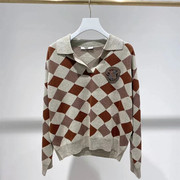 • 宝贝名称: 梦地素22秋季新美式学院复古菱格慵懒polo领针织衫毛衣女2E4E425
