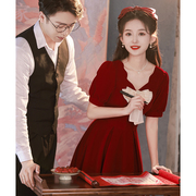 • 宝贝名称: 敬酒服小个子新娘平时可穿红色日常连衣裙回门订婚礼服女法式结婚