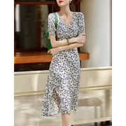 • 宝贝名称: 是心动的感觉!浪漫气息高定桑蚕丝里料泡泡袖茶歇法式桔梗连衣裙