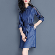 • 宝贝名称: 歌娅姿夏装2018新款女网纱拼接收腰A字裙翻领半袖牛仔连衣裙60162