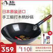 • 宝贝名称: 五福源仕日本原装进口木柄手工锻打铁锅无涂层炒锅物理不粘锅33cm