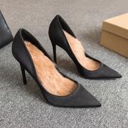 • 宝贝名称: 真丝绸缎尖头包鞋细跟高跟鞋小码女鞋33冬季新款黑色保暖兔毛毛鞋