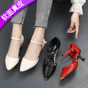 • 宝贝名称: 真皮2020夏季新款中跟细跟中空凉鞋女鞋韩版优雅尖头百搭红色皮鞋