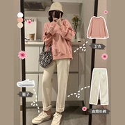 • 宝贝名称: 秋冬女装炸街洋气减龄学院风卫衣直筒修身米白色休闲裤两件套套装