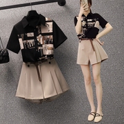 • 宝贝名称: 大码女装夏装2021年新款胖妹妹遮肚显瘦气质衬衫短裤时髦两件套装