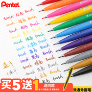 日本pentel派通TOUCH秀丽笔彩色Brush软笔专用手账贺卡柔绘笔书信签字笔brush字帖花体英文彩绘手绘笔软头笔
