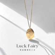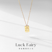 Luck Fairy少女秘密|爱神丘比特天使简约复古方牌吊坠钛钢项链