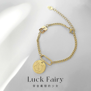 Luck Fairy七月诗人|ins人脸T字个性茶歇少女金属感钛钢闺蜜手链