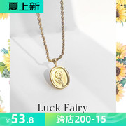 Luck Fairy一生所爱|玫瑰花复古圆牌百搭时尚少女感轻奢钛钢项链