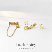 Luck Fairy无意识碎片|质感ab不对称英文复古耳钉法式简约耳饰女