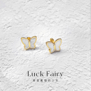 Luck Fairy春蝶|ins日系轻奢蝴蝶立体白贝母耳钉简约小众钛钢耳饰