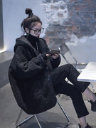 SANDRO MOSCOLONI2022冬款连帽夹棉上衣高级感炸街黑色羊羔毛外套