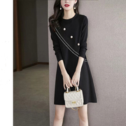 Sandro Moscoloni简约内搭小黑裙秋冬洋气时尚小香风针织连衣裙女