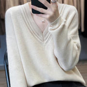 Sandro Moscoloni气质V领羊毛衫女秋冬新款宽松慵懒外穿长袖毛衣