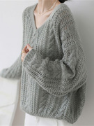 Sandro Moscoloni慵懒风镂空针织衫女秋冬宽松套头内搭时尚毛衣潮