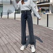 Sandro Moscoloni加绒加厚高腰阔腿牛仔裤女秋冬季宽松显瘦直筒裤