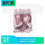 RDPY Lisa人物图案喷涂韩国潮牌男女同款圆领短袖情侣宽松街头T恤