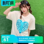 RDPY 原创脊椎爱心发泡短袖韩国潮牌男女情侣嘻哈街头Vibe风T恤