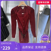 ONLY22年早春复古修身灯芯绒腰带装饰连衣裙122107028/122104028