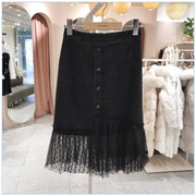 Vero Moda2022春夏新款高腰网纱拼接鱼尾纯色牛仔半裙322337010