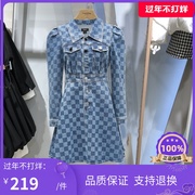 ONLY 2022春季新款棋盘格A字泡泡袖公主风牛仔连衣裙女122142007