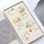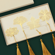 书签古典中国风精美黄铜古风复古创意教师节实用学生用小礼品生日礼物故宫风四叶草叶脉梅兰竹菊镂空金属书签