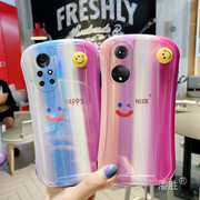 小蛮腰彩虹旋转笑脸适用于华为荣耀50手机壳50pro女款50se弧形v40轻奢版v30亮面耐脏可爱少女心高端奢华小众