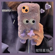 新款可爱紫色毛绒小怪兽适用于苹果13手机壳iphone13mini表情12刺绣12promax毛茸茸秋冬软硅胶毛绒绒冬季小众