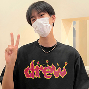 DREW HOUSE笑脸火焰美式潮牌男女情侣同款夏季纯棉宽松FOG短袖T恤
