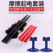 摩擦起电实验套装胶棒玻棒附毛皮丝绸旋转架学生用小学初中物理静电演示实验器材儿童玩具教学教具验电棒