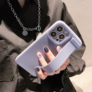紫色腕带适用苹果14pro手机壳新款简约高级感13防摔12镜头全包11硅胶x小众高档iphone14promax支架女保护套潮