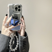 冷淡风银色高级感适用苹果13手机壳新款带支架挂绳小众14pro防摔12简约11链条xs网红iphone13promax女ins硅胶