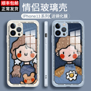 玻璃油画适用小众情侣手机壳苹果13新款高级感可爱独特iphone13promax卡通男女生13pro硅胶x个性创意12女款11