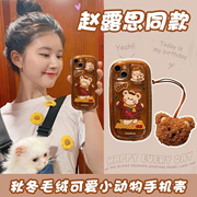 赵露思同款毛绒泰迪熊适用苹果14pro手机壳新款卡通可爱13带挂绳12防摔11全包iphone14promax个性秋冬季女ins