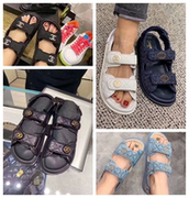 Chanel/香奈儿 20春夏双C logo魔术贴平底休闲凉鞋罗马鞋女凉鞋