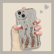 适用苹果14手机保护壳iPhone13promax高级感电镀银11网红创意12立体水波纹14pro矽胶手机套13pro新款女14plus简约