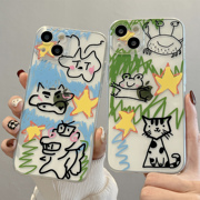 网红创意涂鸦卡通适用iPhone14promax手机保护壳11苹果13新款12透明硅胶14pro全包防摔x/xr手机保护套8plus情侣款女款