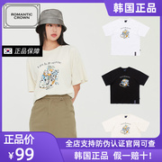 ROMANTIC CROWN2022夏季新款星座图案宽松韩版女纯棉落肩短袖T恤