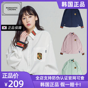 ROMANTIC CROWN方领线条衬衣韩版女士宽松纯色潮百搭衬衫情侣衫